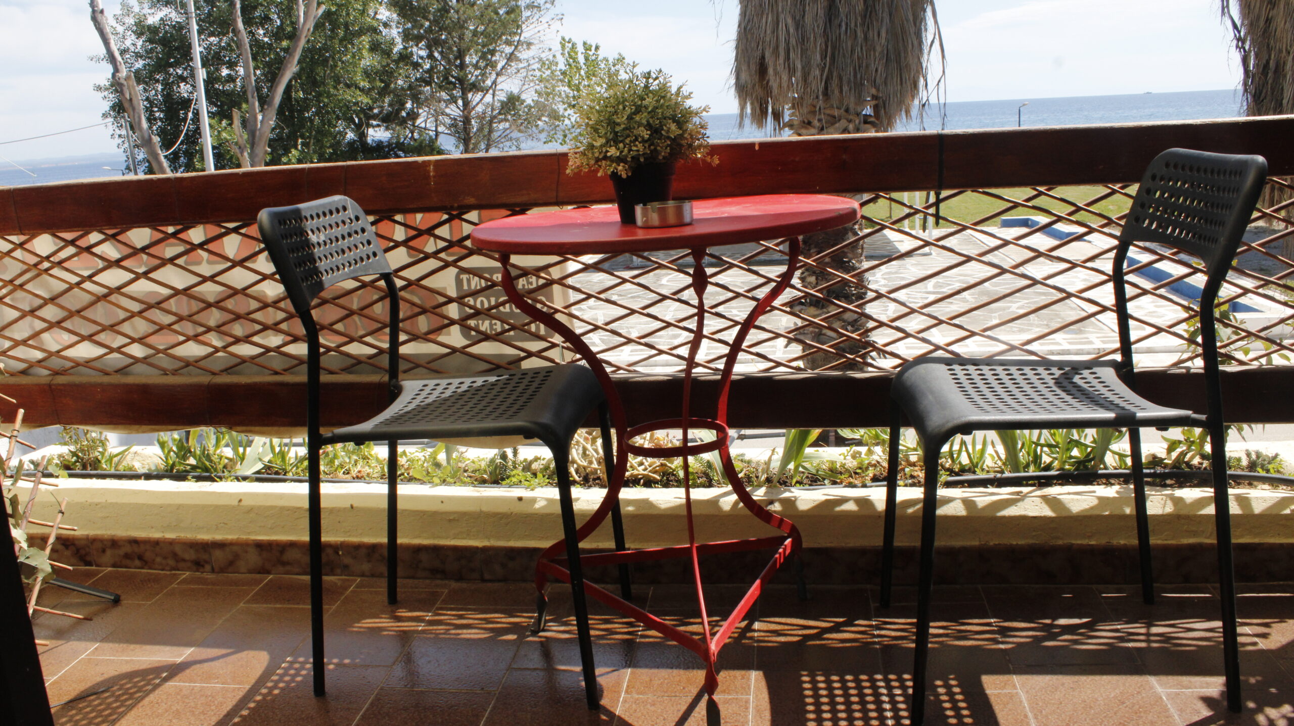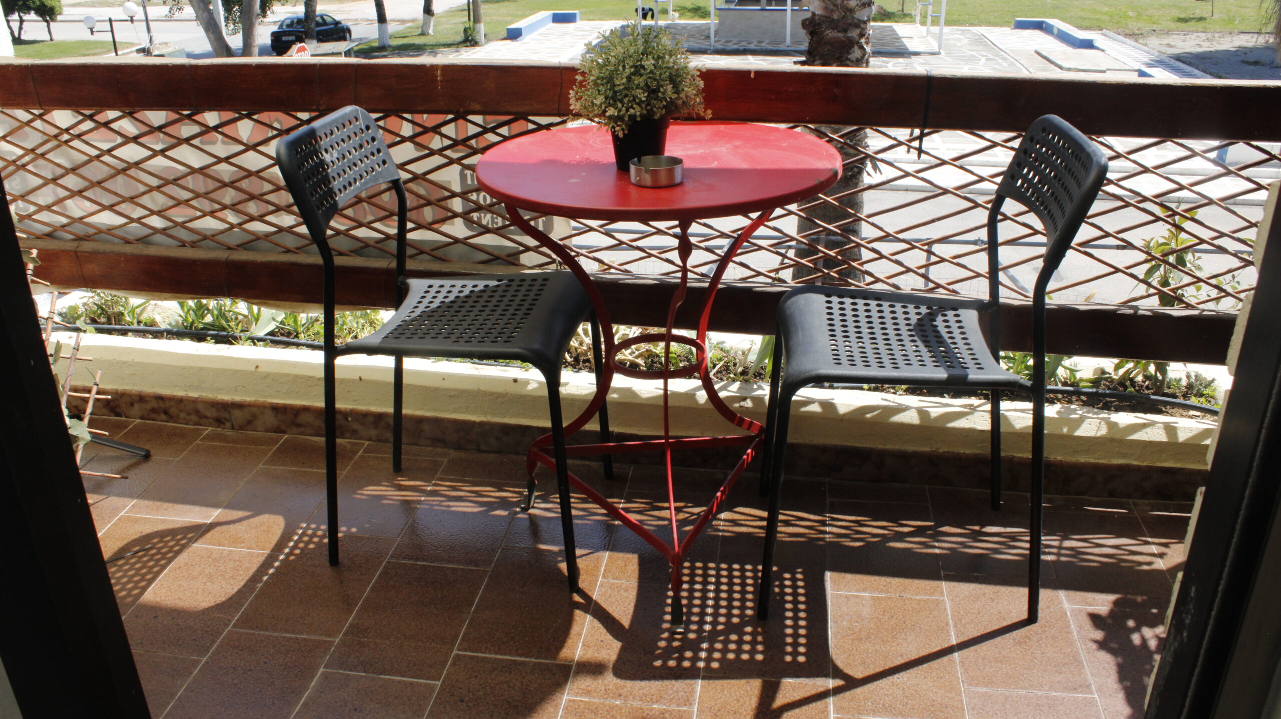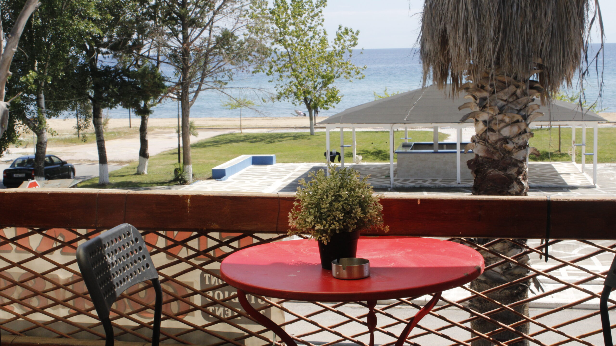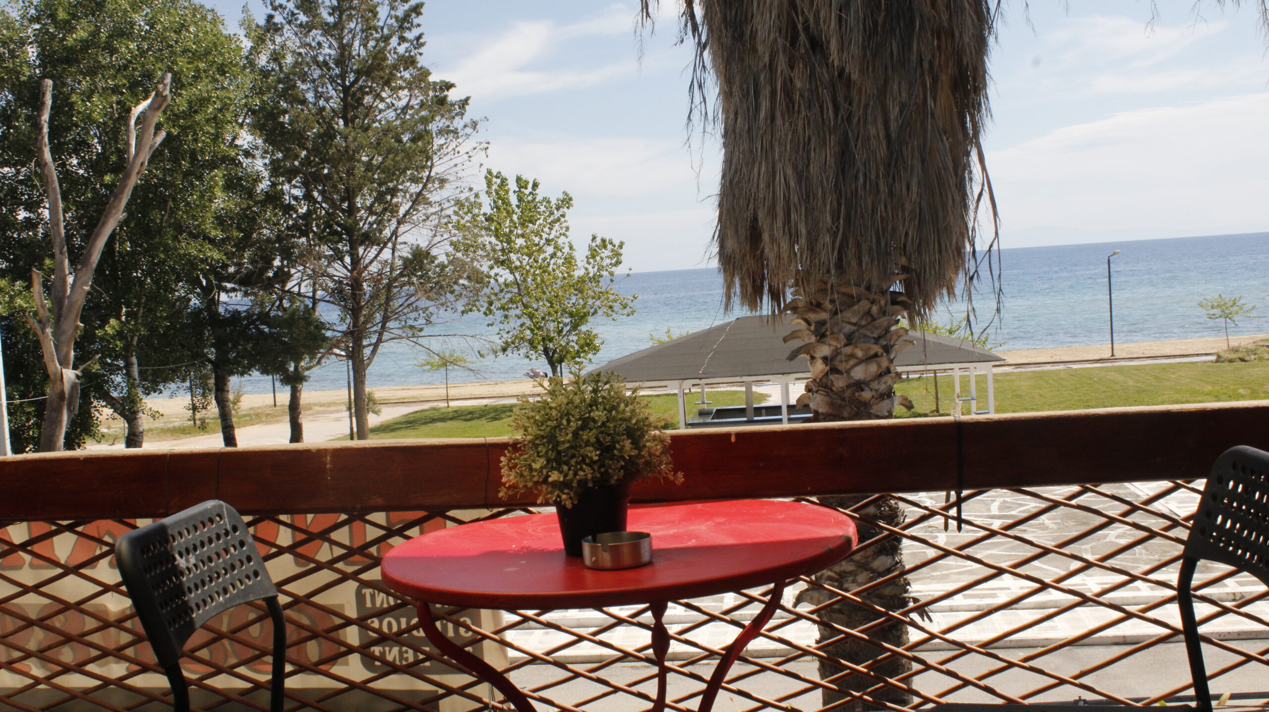 Enjoy your summer vacation in a cozy rental studio in Nea Plagia, Halkidiki, located right by the sea with breathtaking views! The studio is on the first floor and features a spacious balcony with a table and chairs, perfect for relaxing moments.